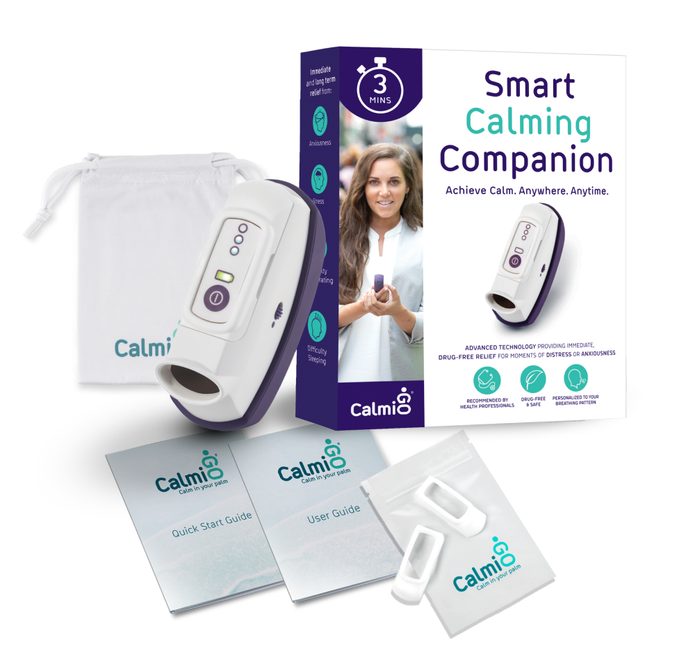 המכשיר המוביל בעולם להקלה מהירה של חרדה, התקפי פאניקה, פוסט טראומה ומתח נפשי. CalmiGo הוא המכשיר היחיד בטכנולוגיה בלעדית (טכנולוגיה מוגנת פטנט) אשר מוכח קלינית לספק הקלה מיידית וללא תרופות ברגעים של חרדה, התקפי פאניקה ופוסט טראומה.